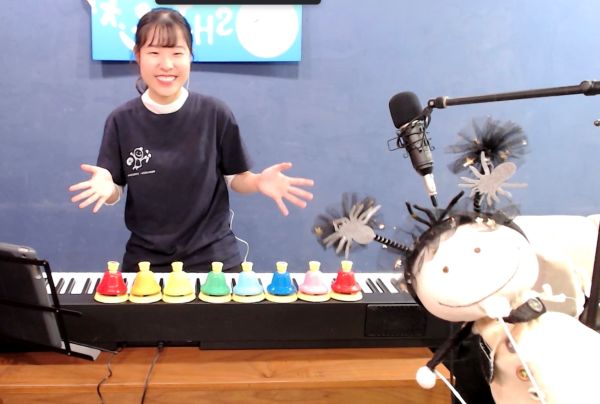 ドレミの歌では、デスクベルとピアノを同時に演奏しました。カラフルなかわいいベルが印象に残っているといいなと思いました☺️