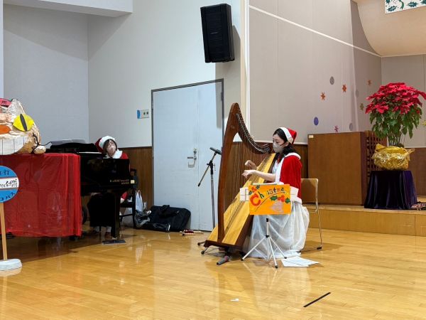 園のクリスマスコンサートで演奏させていただきました。通常の活動場所ではない礼拝堂で、いつもは参加されない通所の方や保護者様、そしてベッドに寝たきりの方まで、たくさんの方が参加してくださり感激でした。クリスマスにピッタリな豪華な空間となりました。音楽に合わせて保護者様がお子様の身体に優しくリズムをとってくださる姿はとても温かく微笑ましかったです。