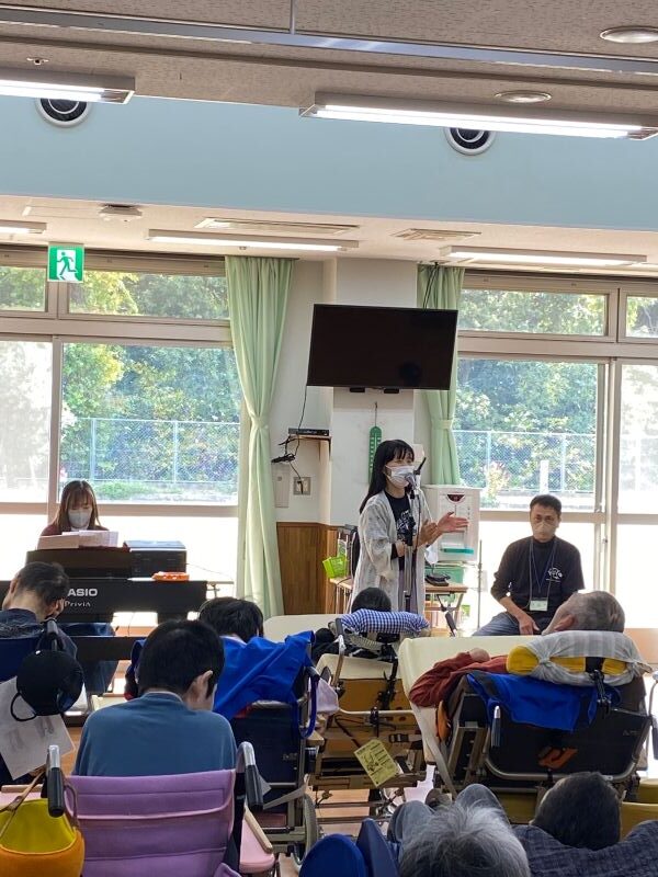 皆さん楽しそうに、身体を動かしたり手を叩いたり、タンバリンを鳴らしたり、ご自分のペースで楽しんで参加していただき、私たちもとても楽しく幸せな時間をいただきました。