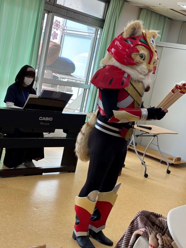 着ぐるみでのパフォーマンスだったので、利用者さん達が驚かないだろうかと心配しましたが、皆さん大喜びでした。